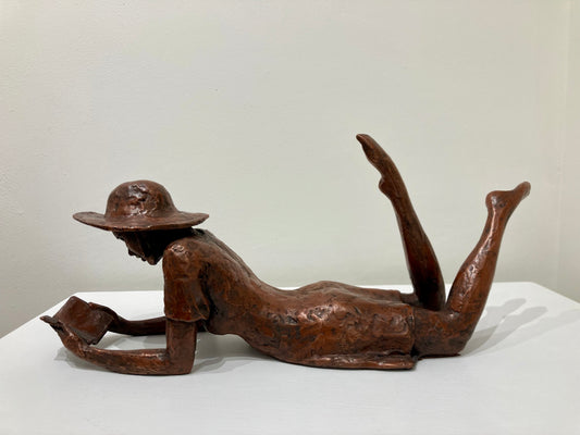 Reading Girl in a Hat - copper finish