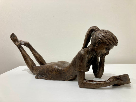 Reading Girl with a ponytail - bronze